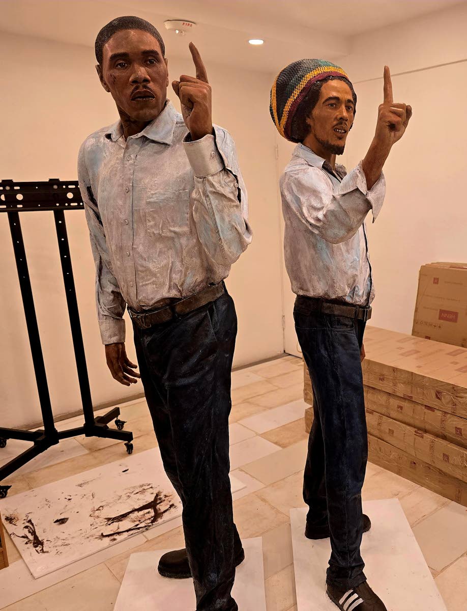 Speaking with Cole, it is clear that the sculptures were designed to provoke thought. Kartel, depicted with his signature tattoos and raised finger signalling “number one,” stands beside the King of Reggae, Bob Marley, whose iconic image continues to resonate decades after his passing in 1981. Marley’s finger is also raised, signalling “number one”.
