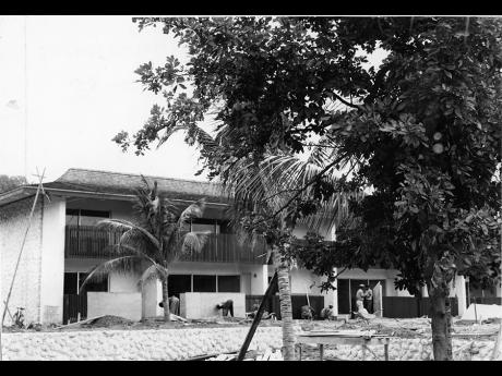 In front of this near-completed wing of the Hotel (to the right of the picture) is a transplanted ackee tree.