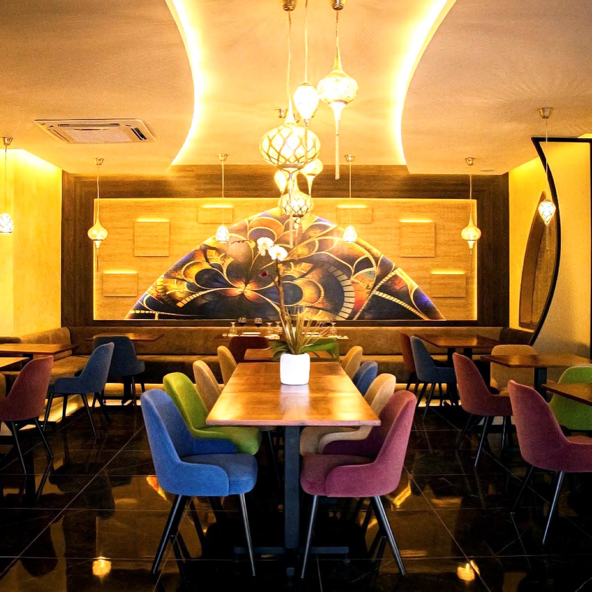 Chez Maria’s custom-made bar and chairs have a Middle Eastern flair.