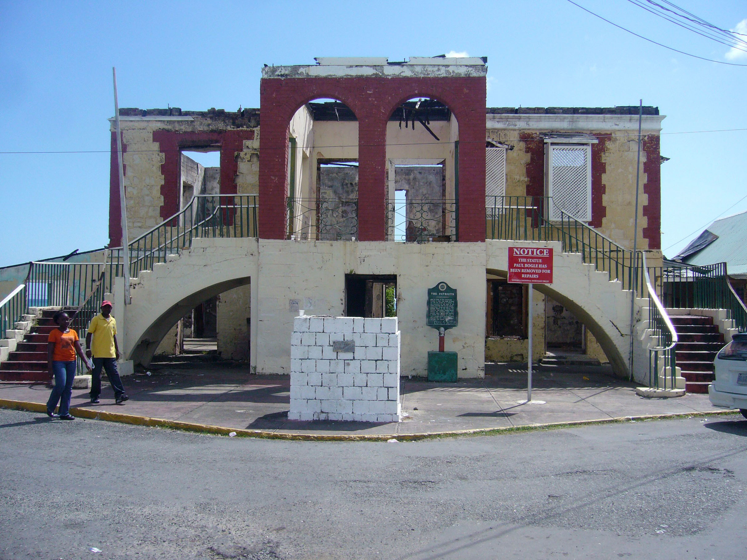 But there was to be more fire. In the early morning of February 19, 2007, the restored building was razed, apparently from fire started by vagrants. Paul Bogle's statue was severely destroyed, and after much controversy, it was removed for repairs.