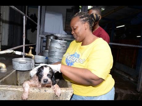 Racquel Hylton tending to a dog at the current facilities of the Jamaica Society for the Prevention of Cruelty to Animals in St Andrew.