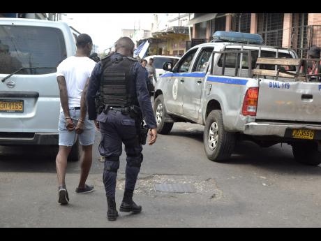 During the operation, at least six men were seen being interrogated or detained by the police, who took up positions at almost all major intersections in West Parade, including the problematic Beckford Street, which is usually impassable by vehicles and pedestrians because of vendors who openly display their goods on the ground.