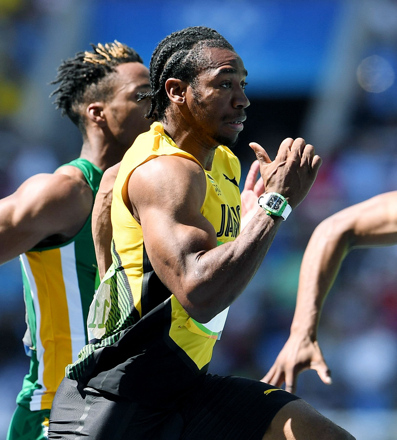 Yohan Blake powering to victory in his men's 100m heat in 10.11 seconds.