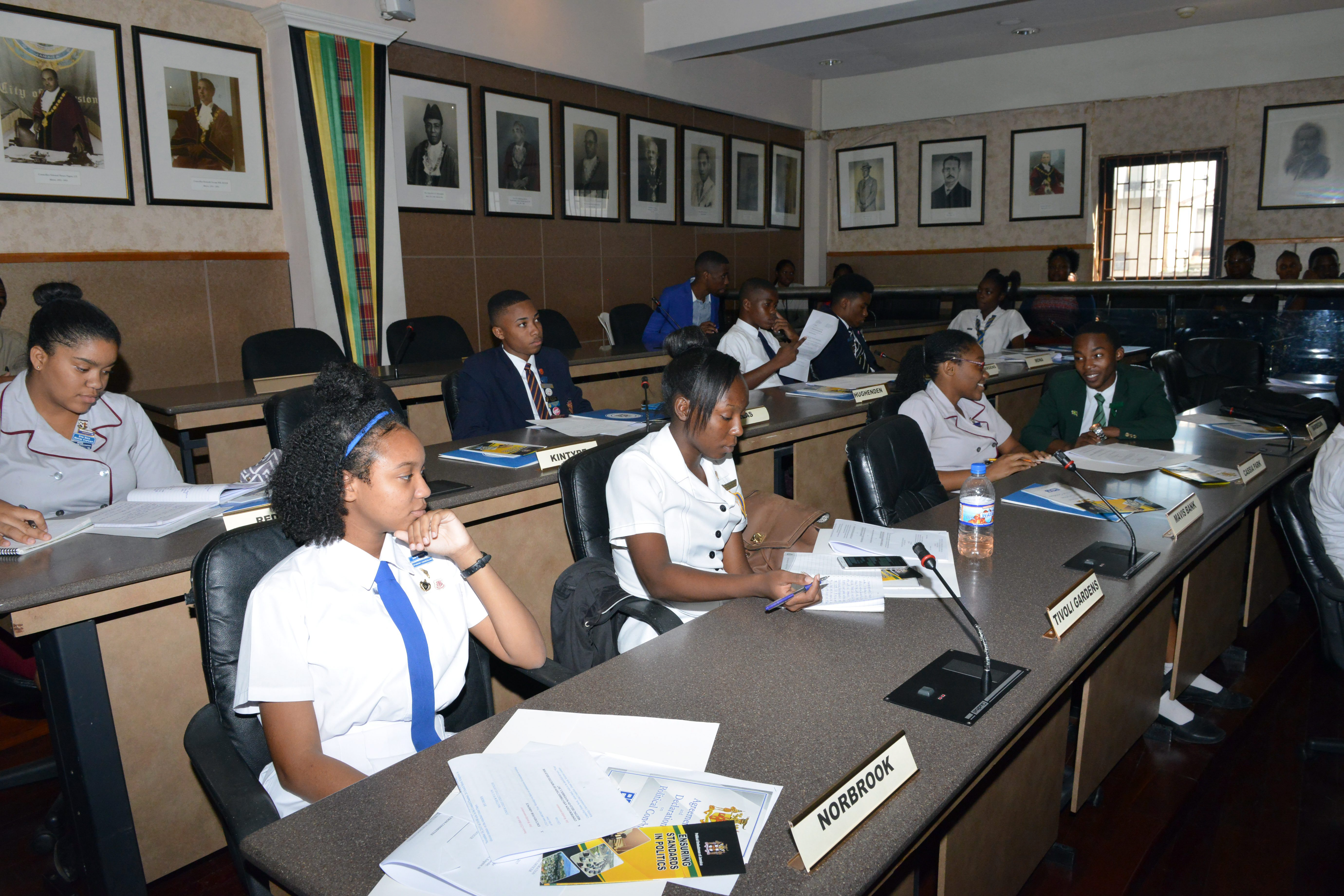 Annakay Hudson, Campion College sixth-former and junior mayor of Kingston, performing her duties last Thursday at the Kingston and St Andrew Municipal Corporation. Students from high and junior high schools within the municipality conducted a mock session of council to include vibrant discussions on topical issues affecting young people. The session was held in observance of Local Government Month and as a gesture to promote awareness among our youth on matters relevant to local governance.