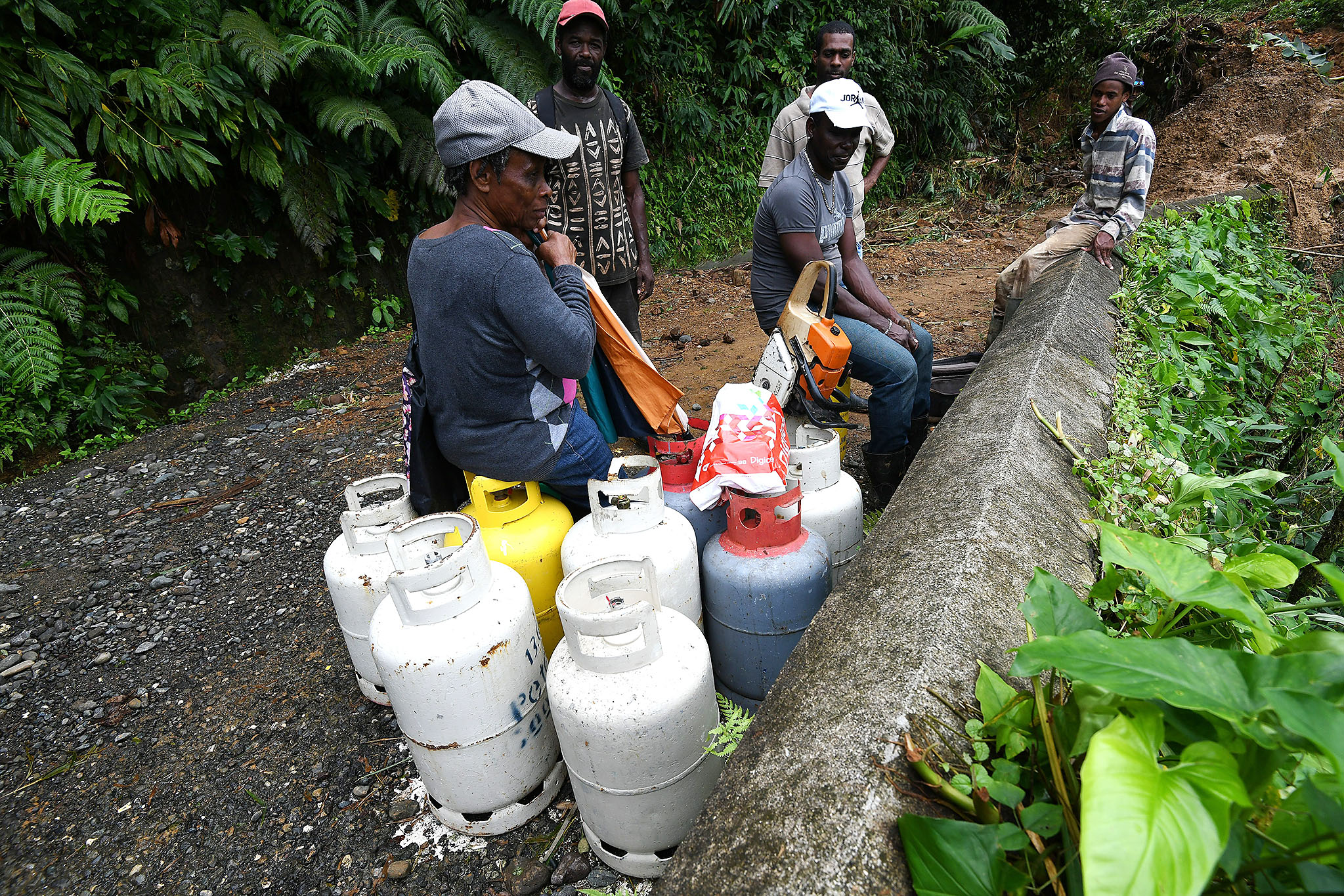 With the Petcom truck scheduled to do its regular delivery and pick-up yesterday, businessman Errol Harris took the necessary action to ensure that his cooking gas customers would not be left in the cold. Hiring a taxi to take 12 empty gas cylinders from Barracks to the blocked road, he was assisted by residents who volunteered to risk the slippery and treacherous pathway to get the containers over to the Barry Hill side.
