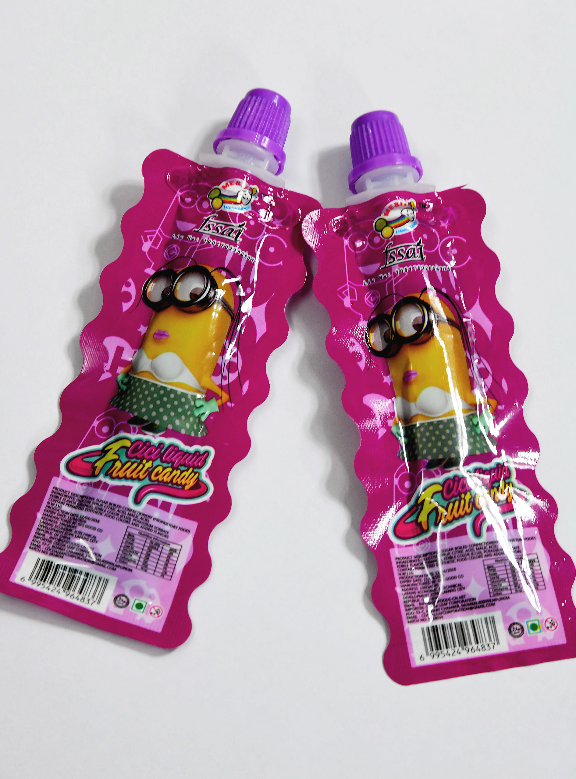 The CiCi liquid fruit candy comes in colourful packages featuring minions, the fictional yellow creatures that appear in the popular Despicable Me movie franchise.