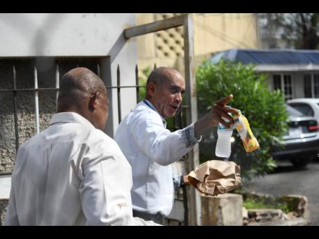 A doctor who was attending to Ruel Reid and Fritz Pinnock before their bail hearing walks outside the Kingston and St Andrew Parish Court in Half-Way Tree, St Andrew, yesterday.
