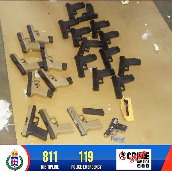 On January 27, the St James police seized 22 illegal firearms to include 21 Glock pistols and a Cobra revolver, along with ammunition at the Montego Bay Wharf. The guns and ammunition were found in a container which had arrived from the United States during an operation assisted by the US Bureau of Alcohol, Tobacco, Firearms and Explosives.
