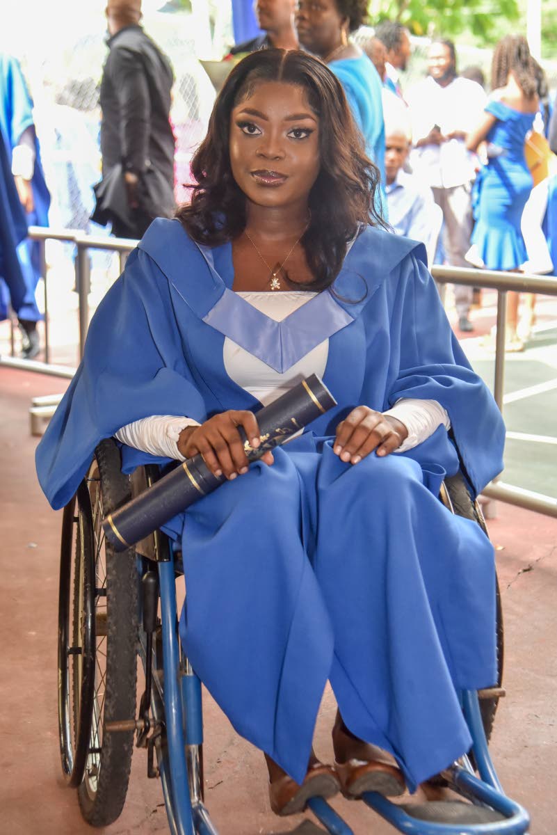 Despite her walking limitations and being a mother, Sashagaye Thomson is now a proud graduate of the Faculty of Education and Liberal Studies at the University of Technology. She says her friends and family were the backbone of her success.