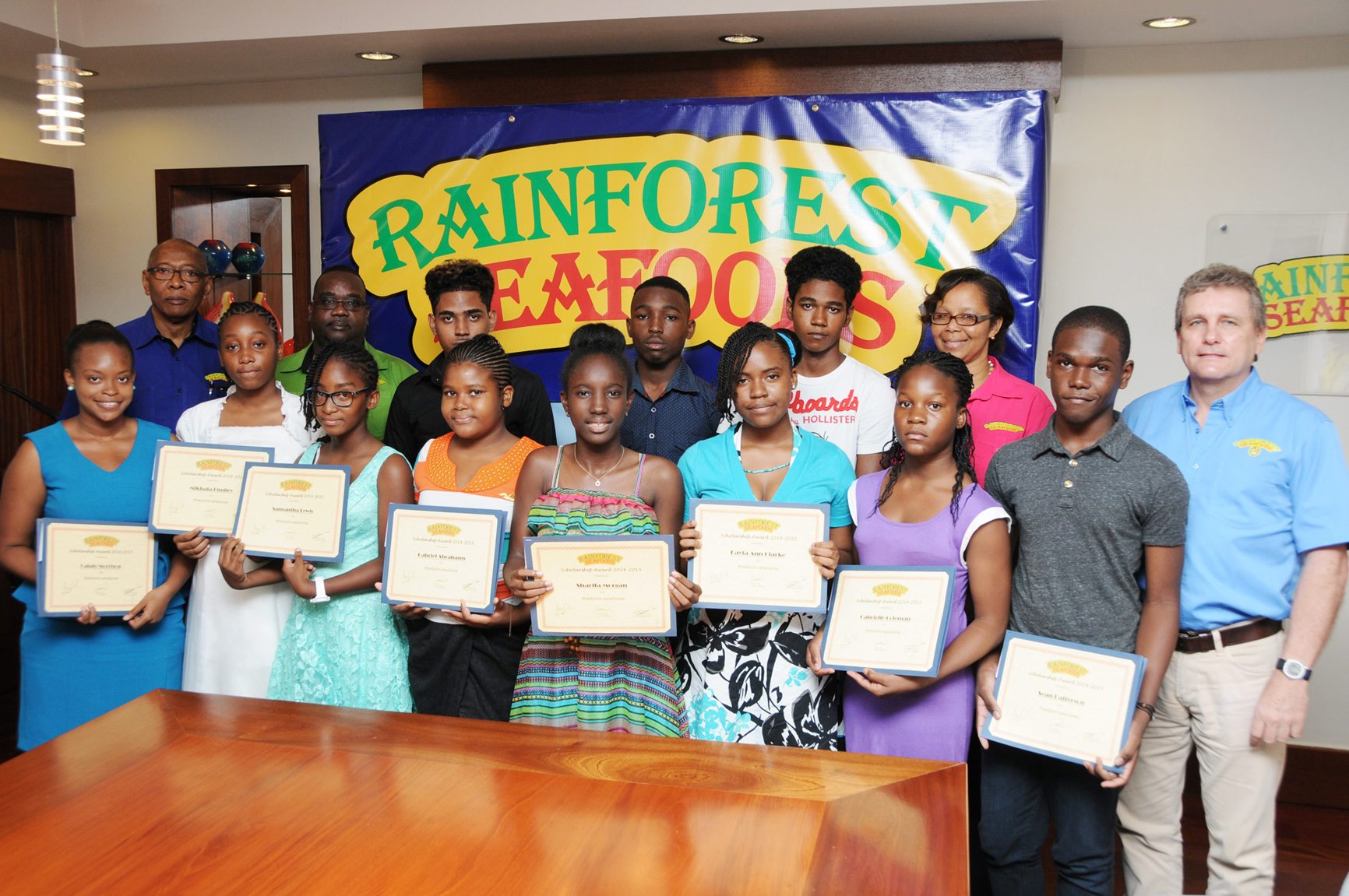 Seafood giant Rainforest Seafoods awarded 18 students with academic scholarships totalling $1.5 million, on Monday, August 17, at their Slipe Road offices in Kingston. They also disbursed 50 book grants to employees.