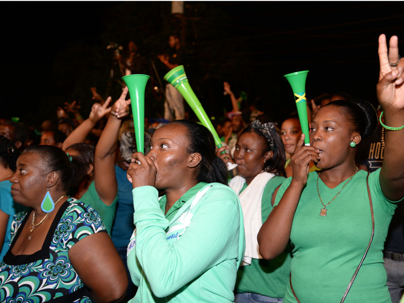 Like a disc jockey at a dancehall session Holness egged on the crowd.