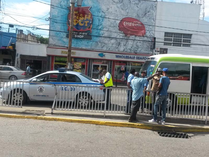 Cop clashes with bus conductor in Half-Way Tree over illegal stop
