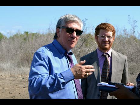 Luis G. Moreno (left), United States ambassador to Jamaica, and Joshua Polacheck, counselor for public affairs in the US Embassy, look on during a post-blast investigation course jointly funded by the US State Department and United Nations at the Green Bay Firing Range in Portmore, St Catherine, on February 4.