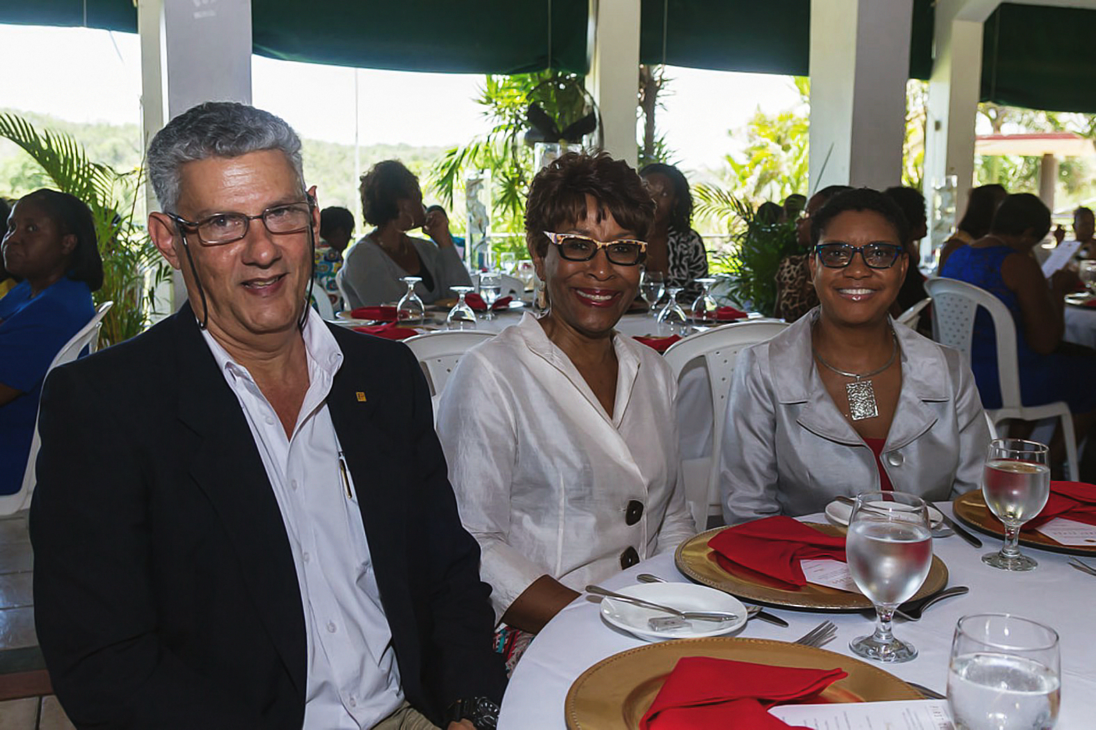 From left: Dr Fred Hanley, technical/research and development manager at Best Dressed Feed Mill; Dr Claudette Cooke, vice-president, human resources and public relations, Jamaica Broilers Group; and Joan Forrest-Henry, divisional sales and marketing manager, Best Dressed Chicken, at the luncheon for teachers.