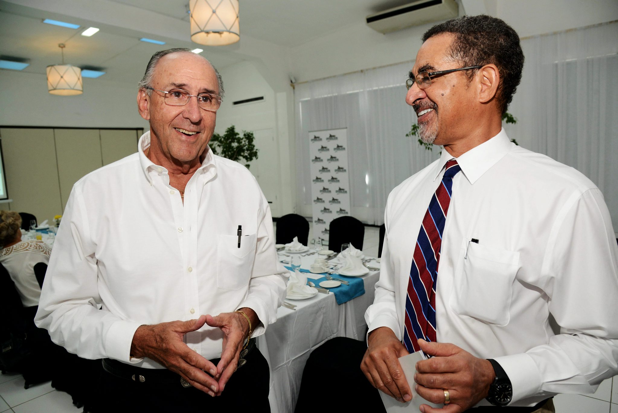 Loyal COK Sodality member Christal-Ann Thompson-Richards (second right) engages (from left), Orville Christie, vice president- COK Sodality board of directors, Andrew Brown, Andre Gooden and Jacqueline Mighty, at the launch of its three-day Education Loan Sale for tertiary students from July to September at the COK head office in Cross Roads, recently.