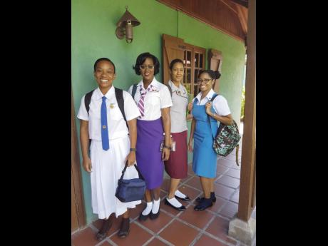 From left: Loren Lee, Karla Davis, Danah Cameron and Bianca Atkinson, all members of the Public Relations Department at the Jamaica Broilers Group, representing their respective high schools in uniform.
