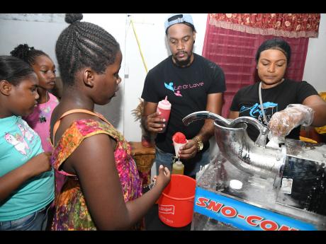 Ramaar Allen and wife Ayesha Dawes Allen of Gift of Love Foundation and Ara Party Rentals serving snow cones.