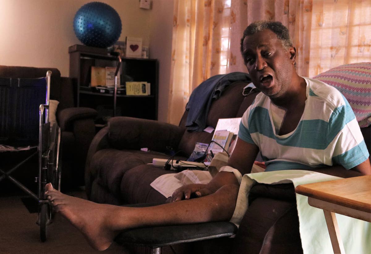 Each morning his mother, Cynthia Barrett, helps her son into a wheelchair before wheeling him into the living room of his home in Edgewater, Portmore, where he spends the entire day, passing the time between watching television, reading, chatting on the phone, or checking out things on his laptop. At night, he is wheeled back to his bedroom.