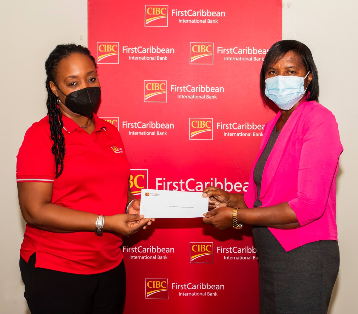 In compliance with social distancing protocols, CIBC FirstCaribbean took a decision to forgo an employee Christmas party, donating the money instead to 11 local charities. Here, Renee Whitehorne (left), marketing manager of the bank, presents a cheque to Mavis Farquharson of the Marie Atkins Night Shelter & Benevolent Society. This is the second consecutive year that the bank has dedicated this fund to worthy causes. This year’s recipients were Salvation Army, Food For The Poor, City Life Ministries, Marie Atkins Night Shelter & Benevolent Society, May Pen Infirmary, Committee for the Upliftment of the Mentally Ill (CUMI), Portland Rehabilitation Management Centre, Westmoreland Infirmary, Naggo Head Primary School, Candle in the Dark and Women’s Centre of Jamaica (St Ann’s Bay).