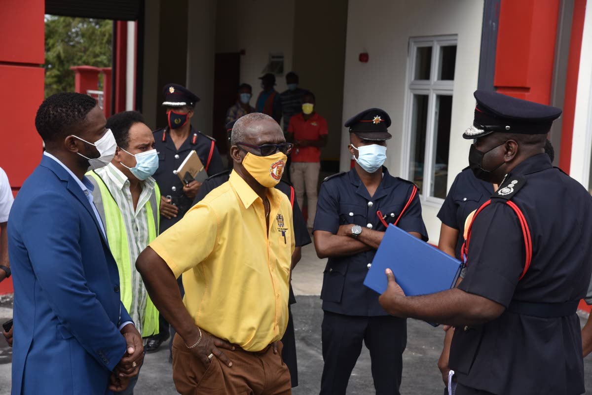McKenzie in conversation with firefighters at the St James Fire Station recently.