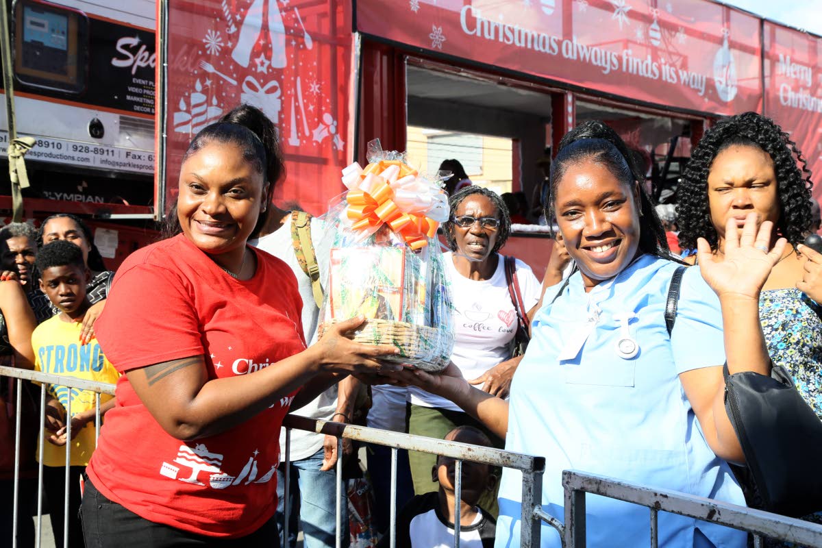 A large crowd gathered around the rails erected by the team from Coca-Cola beside the Valumart supermarket in May Pen as they made their final stop on their Christmas Road Tour, which kicked off on December 9 at Mandela Park in Kingston.