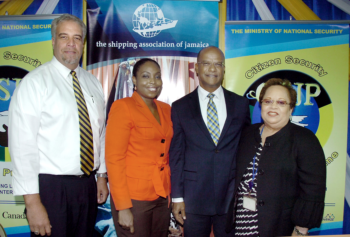 From left: Shipping Association of Jamaica's (SAJ) president, Kim Clarke; deputy general manager of the SAJ, Andrea McGibbon White; national security minister, Peter Bunting and vice president of the SAJ, Denise Lyn Fatt after the signing.