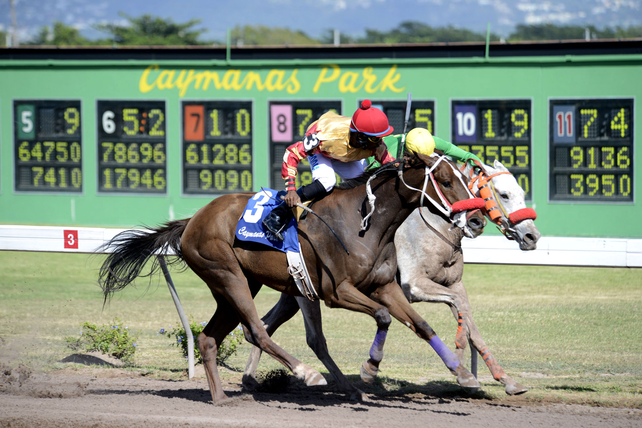 I’M ALLWRIGHT (left, Shamaree Muir) winning last Saturday’s by a short head from YES WE WILL with André Powell aboard.