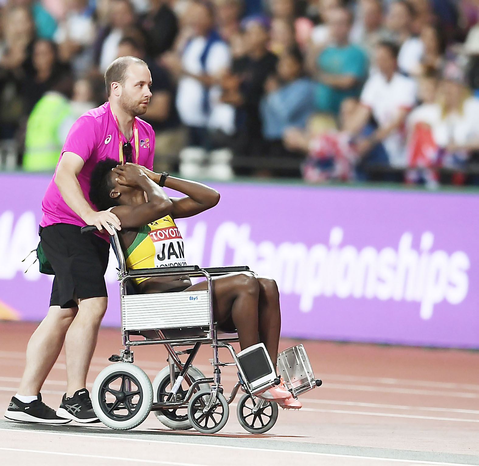 Anneisha McLaughlin-Whilby was brought in to replace McPherson and the line-up was completed with Chrisann Gordon, Jackson and Novlene Williams-Mills. McLaughlin-Whilby, however, suffered a leg injury 100m into her second-leg run before crashing to the ground and ending the Jamaicans' hopes of defending their title.