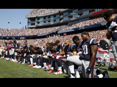 Last week across the entire NFL, only four players knelt or sat, and two stood with their fists raised. In the nine early games yesterday, AP reporters counted 102 players kneeling or sitting, and at least three raising their fists.