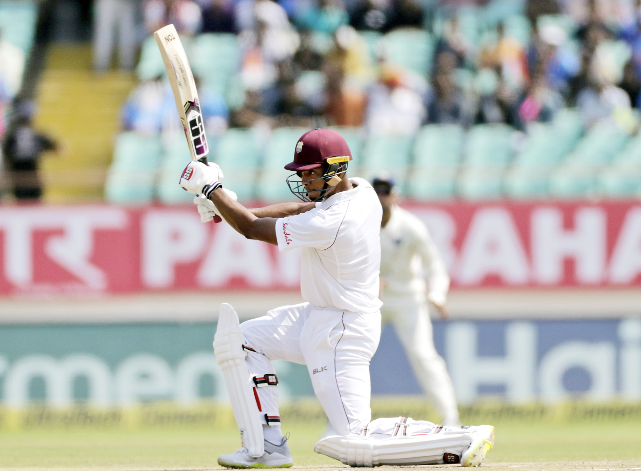 Chase, too, remained positive, moving into the 40s with two leg-side boundaries off Kuldeep before raising his sixth Test half-century with another two boundaries off the same bowler a few overs later.