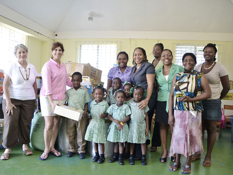 Members of the Tryall Fund executive body hand over supplies that will be used at the Montpelier Basic School, Chambers Pen Basic School and Hopewell Deliverance Centre Basic School in Hanover. -Photo by sheena gayle