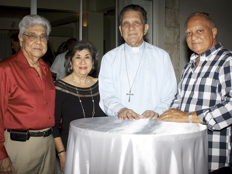 Patron and founder of the Good Shepherd Foundation, Archbishop Charles H. Dufour (second right), in the company of inbond merchants Pishu and Janki Chandiran (first and second left) and Dr Richard Keane, pastor of Family Church on the Rock.