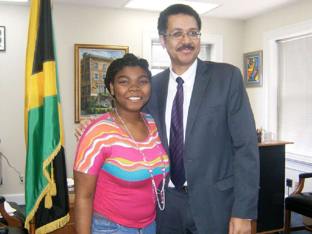 Green Pond High School student Roshe McKenzie (left) hangs out with Jamaica's Ambassador to the United States Professor Stephen Vasciannie during her trip to Washington, DC, recently as a part of the Bold Leaders Programme.