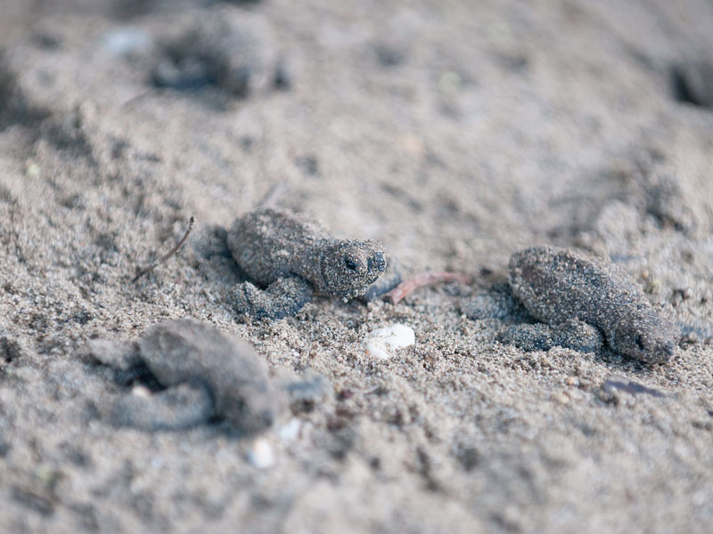To maximise the number of eggs that are hatched and hatchlings that reach the sea, the turtles are manually removed from the nest. When the turtles hatch naturally, about 30 per cent are lost to predators as they cross the beach. Turtles may also become trapped in the nest after hatching. By releasing the nest, it maximises the number of turtles hatching and prevents predators from attacking the hatchlings. The timing of the nest release is about 90 minutes before sunset, because at this time, larger fish that would attack and eat the hatchlings are not in the bay.